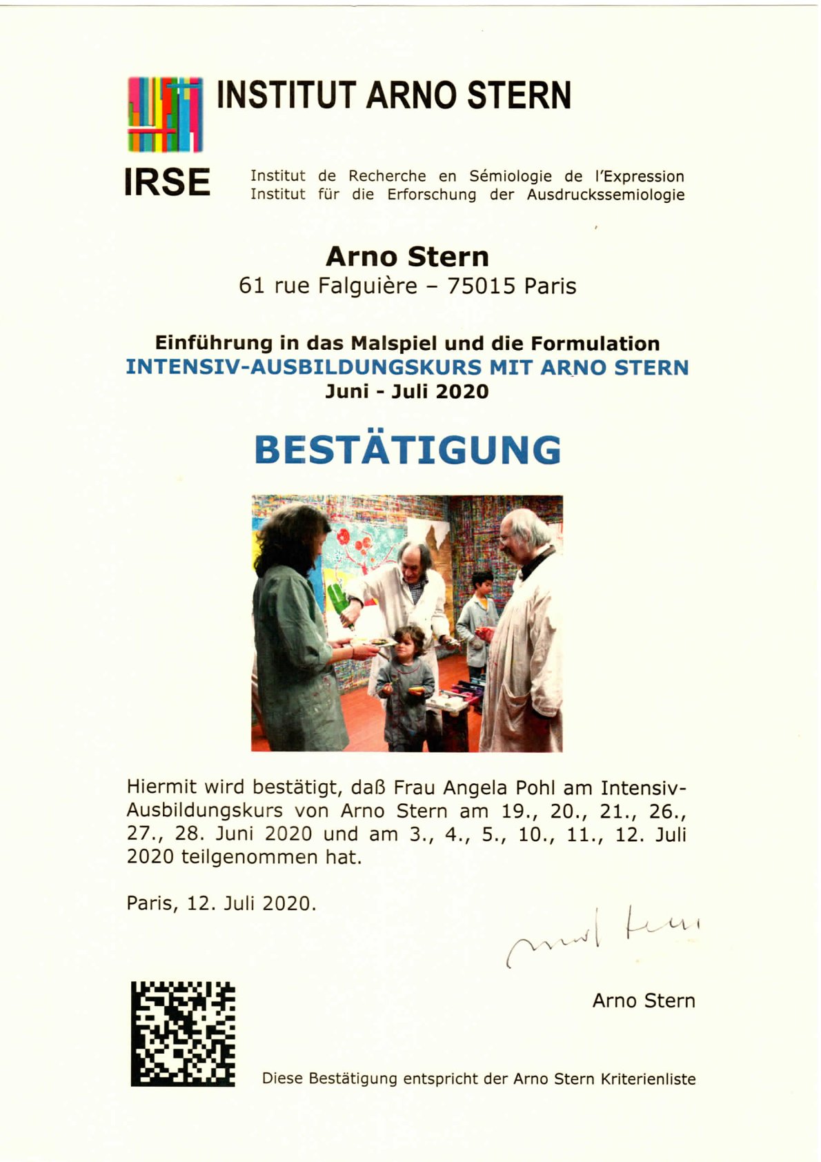 Im Sommer 2020 konnte ich schließlich das Ausbildungs-Seminar zur MALORT-Dienenden bei Arno Stern absolvieren und bin sehr glücklich darüber, nun im eigens dafür eingerichteten MALORT in Mank dieses Spiel erlebbar machen zu können.